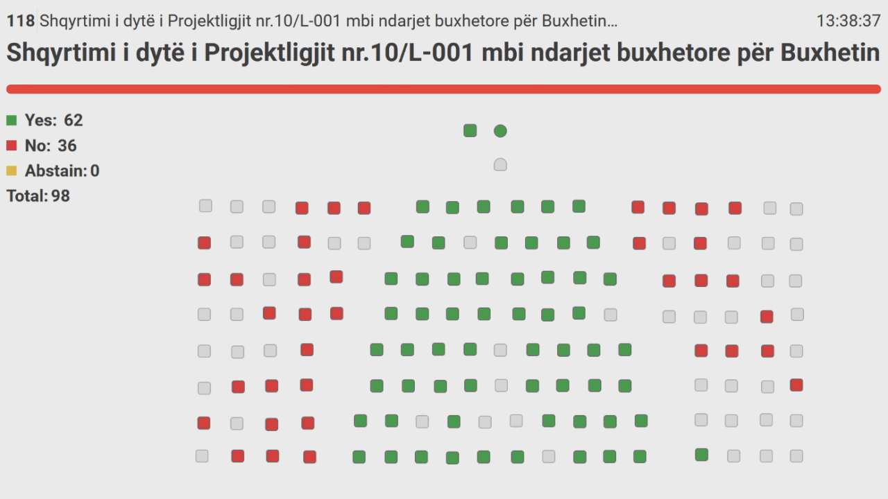 Me 62 vota për dhe 36 kundër, deputetët e Kuvendit të Kosovës miratuan buxhetin në lexim të dytë…
