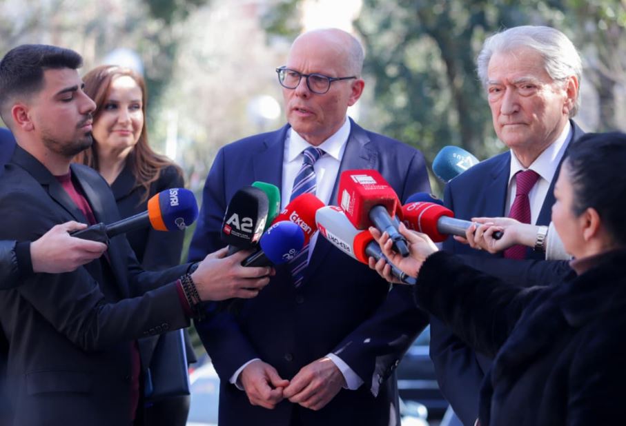 Kreu i Partisë Demokratike, Sali Berisha, pas përfundimit të takimit me deputetin gjerman të CDU-së, Peter Beyer, njëkohësisht…