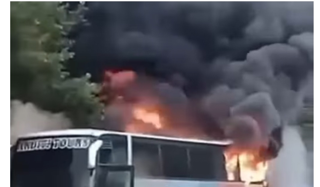 Sipas pamjeve një autobus është përfshirë nga flakët.