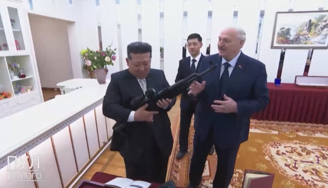 Ajo që tërhoqi vëmendjen ishte një snajper i dhuaruar nga Lukashenko për diktatorin, të cilit i tha: Ta kesh sepse nuk i dihet! Kim Jong un shihet i emocionuar teksa e provon armën e re.