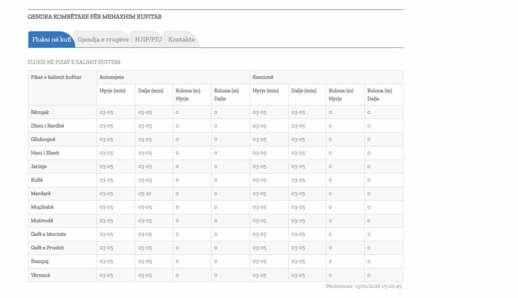 Qendra Kombëtar për Menaxhim Kufitar, i ka përditësuar të dhënat për pritjet në pikat kufitare.