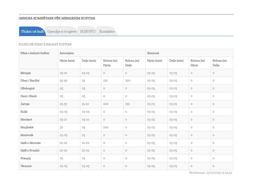 Sakaq, në pikat e tjera kufitare pritjet variojnë nga 3 deri në 15 minuta.