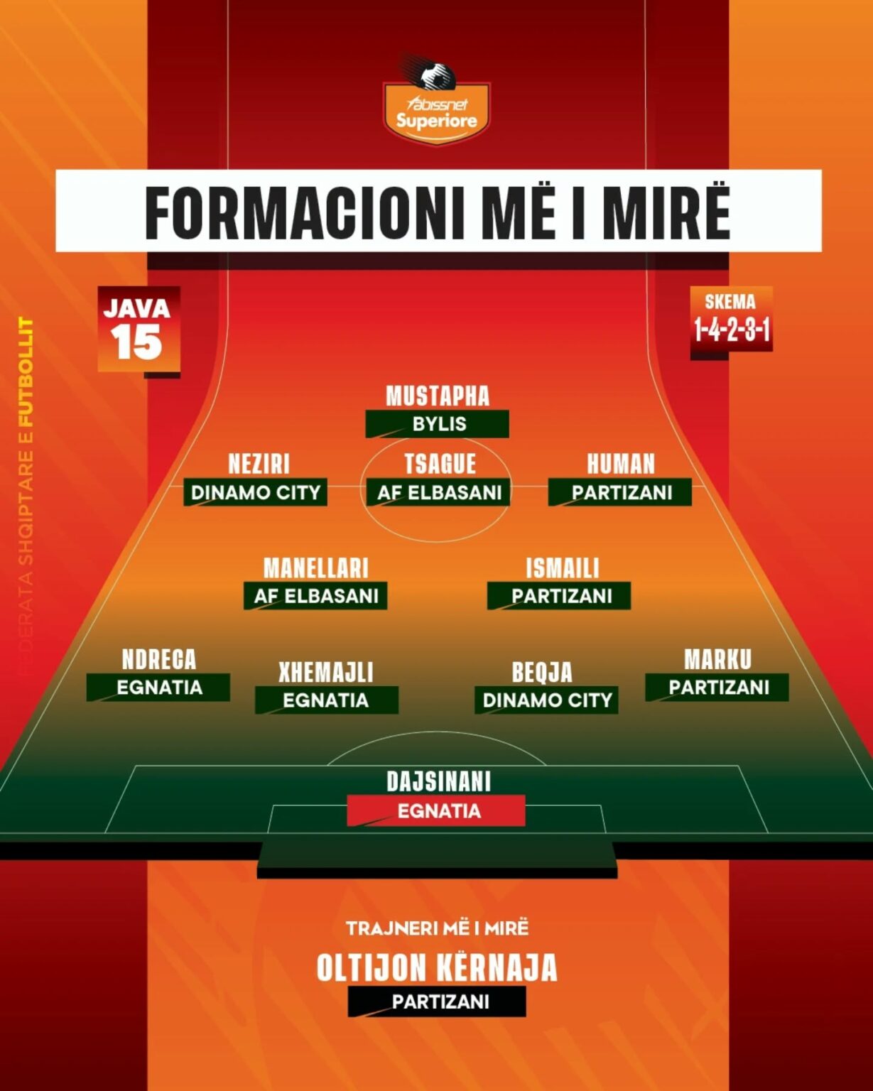 Trajnerët e ekipeve kombëtare të moshave kanë zgjedhur 11-shen me lojtarët që spikatën më shumë në javën që lamë pas në Kampionatin Shqiptar.