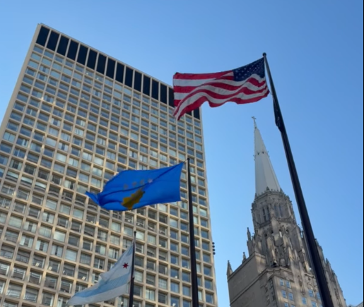 Për nder të 18-vjetorit të Pavarësisë së Kosovës, të premten në Chicago është bërë ngritja solemne e Flamurit të Kosovës përkrah flamurit të Shteteve të Bashkuara të Amerikës dhe atij të qytetit të Çikagos.