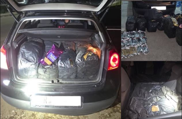 Pas kontrollit të detajuar të veturës, zyrtarët policorë kanë zbuluar dhe sekuestruar: 310 pako duhan, nga 500 gramë secila, me peshë totale rreth 155 kilogramë, 41 paketime të zbrazëta, të gatshme për tregtim ilegal