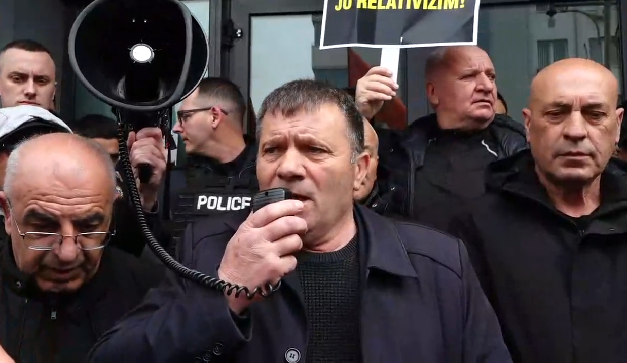 Protesta e veteranëve po mbahet për të kundërshtuar ekspozitën që u vendos në sheshet e Prishtinës e që pasqyroi me pasaktësi masakrat e kryera nga Serbia në Kosovë./