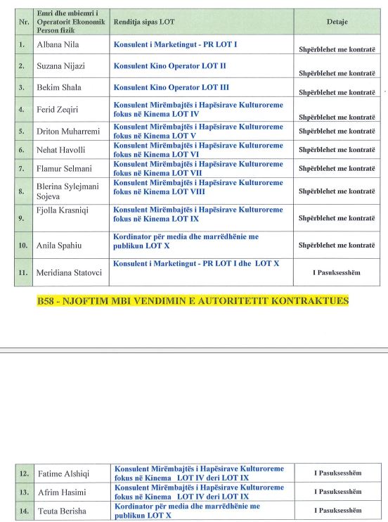 Kjo është lista e konsulentëve të MKRS-së që u punësuan përmes tenderit