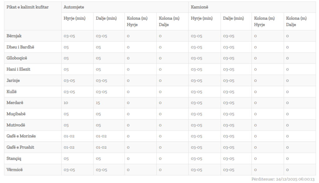 Por, të dhënat e fundit të përditësuara sot në orën 6 të mëngjesit pohojnë se të gjitha pikëkalimet kufitare janë të lira për qarkullim.