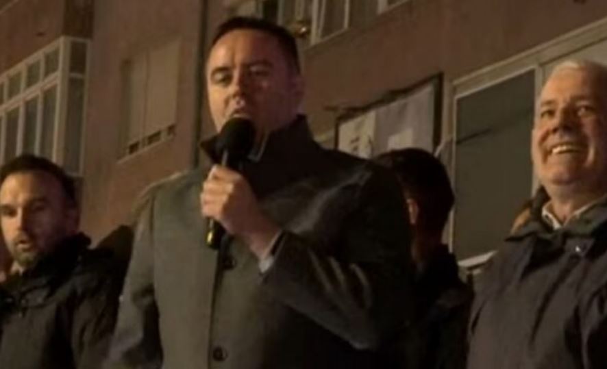 Nënkryetari i Vetëvendosjes, Glauk Konjufca, mori fjalën para shefit të tij, Albin Kurti, në festën e partisë së tij pas fitores.