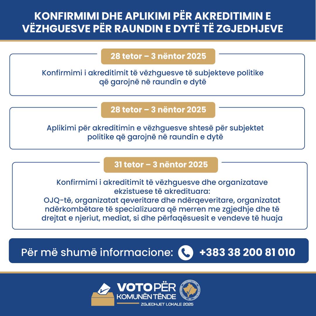 Afati për konfirmim dhe shtim të vëzhguesve është deri më 3 nëntor 2025, në ora 16:00.