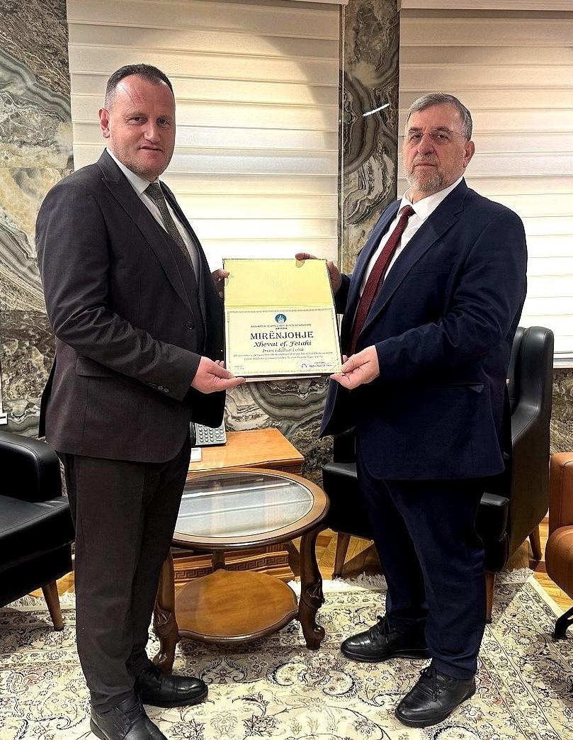 Kryetari i Bashkësisë Islame të Kosovës, Myftiu Naim ef. Tërnava, ndau sot mirënjohje për imamin e njohur nga Bresana e Dragashit Xhevat ef. Fetahi