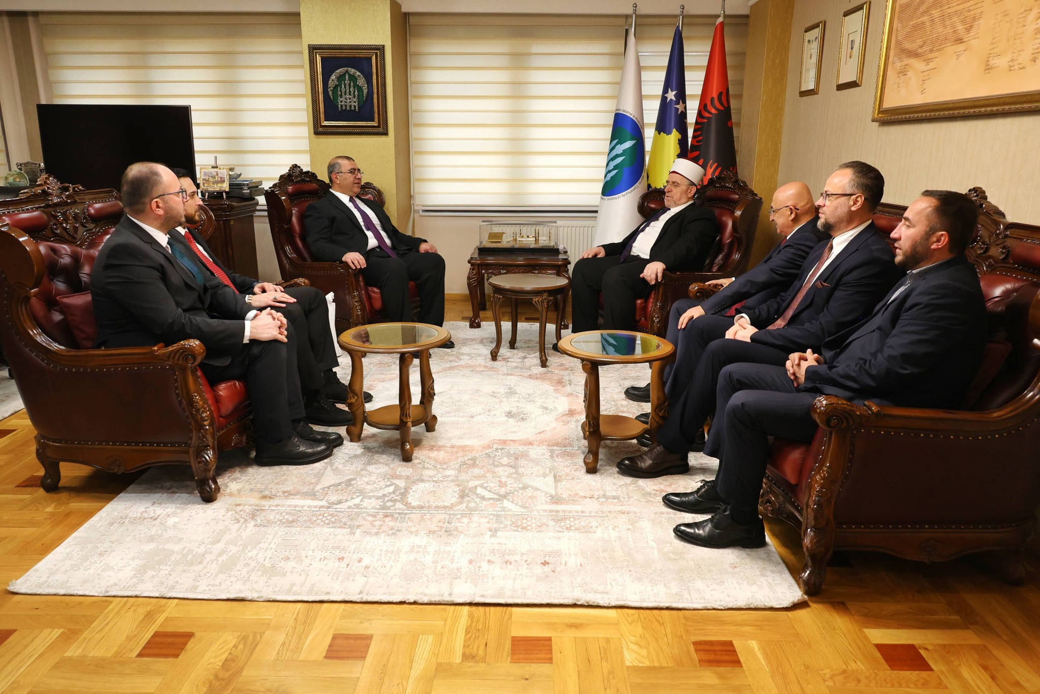 Kryetari i Bashkësisë Islame të Kosovës, Myftiu Naim ef. Tërnava, priti sot në takim një delegacion nga Drejtoria e Përgjithshme e Vakëfeve të Republikës së Turqisë, i përbërë nga Mehmet Ali Palalı, drejtor i Vakëfeve për rajonin e Şanlıurfës, Adem Bacanlı, drejtor i Vakëfeve për rajonin e Malatyas, si dhe Mehmet Batuhan Geçer, zyrtar nga Departamenti për Marrëdhënie me Jashtë në Drejtorinë e Përgjithshme të Vakëfeve.