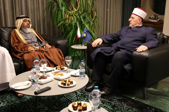 Kryetari i Bashkësisë Islame të Kosovës, Myftiu Naim Tërnava, pret në takim zëvendësministrin e Vakëfeve të shtetit të Katarit, z. Halid el Ghanim.