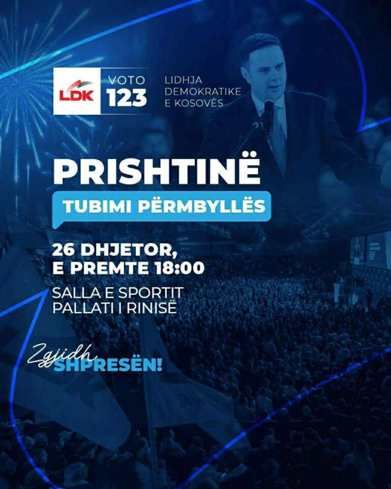 Kështu është bërë e ditur në postimin e LDK-së, ku thuhet se tubimi mbyllës do të mbahet në Pallatin e Rinisë në Prishtinë.