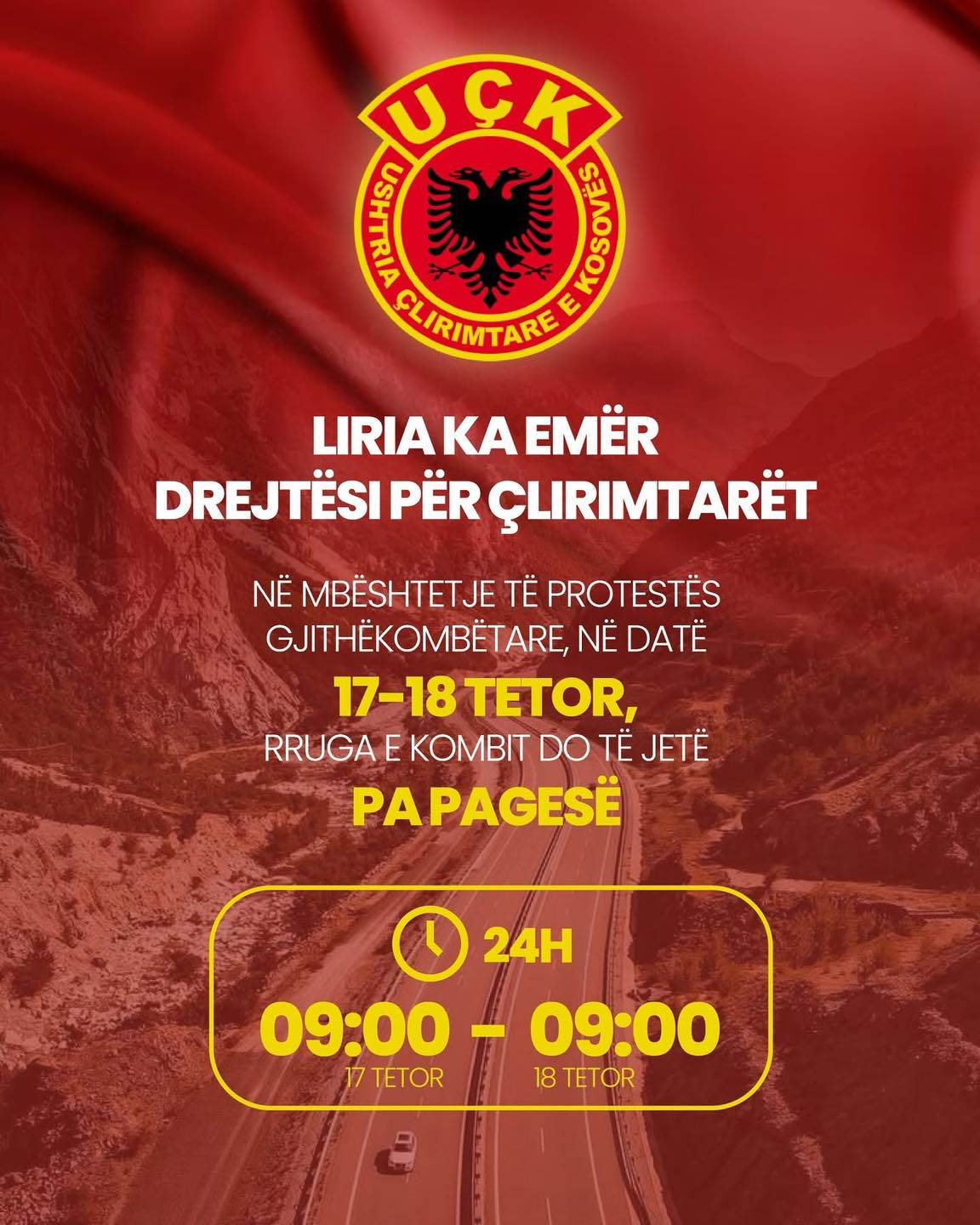 Ministria e Infrastrukturës dhe Energjisë e Shqipërisë, ka njoftuar se Rruga e Kombit do të jetë pa pagesë për 24 orë ditën e premte, ku janë paralajmëruar se do të kalojnë nga Kosova drejt Tiranës 60 autobusë.
