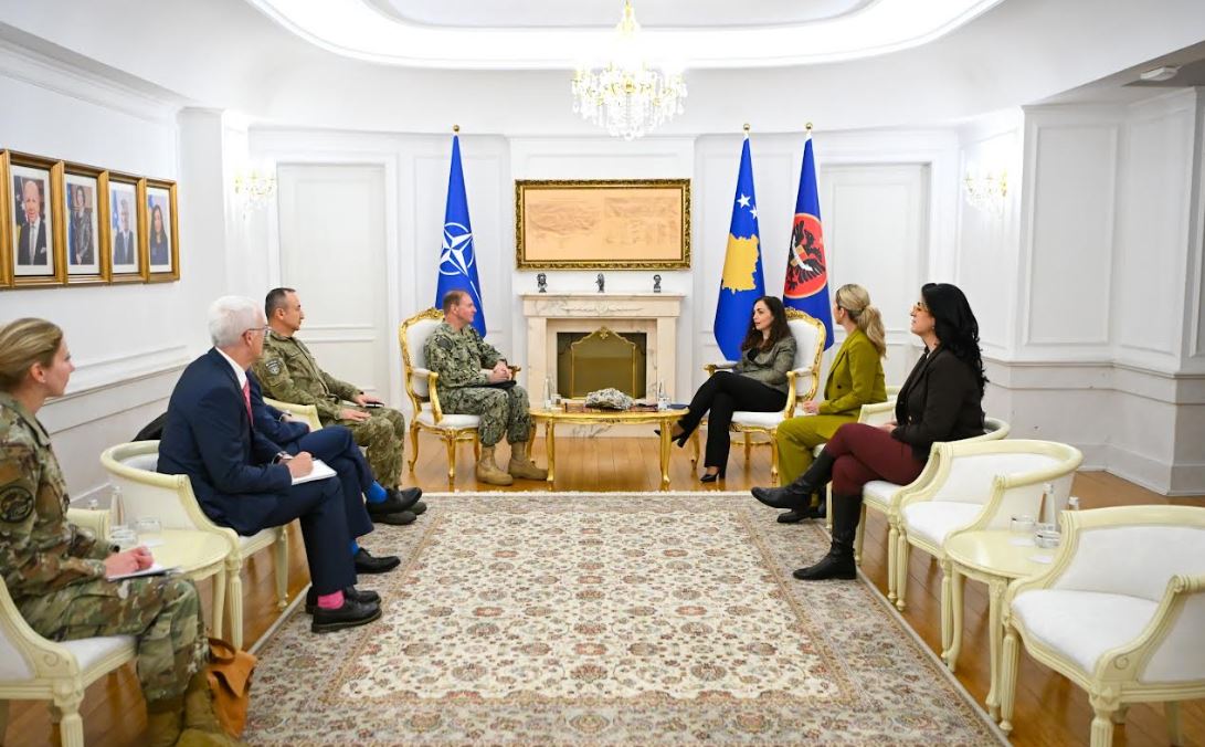 “Presidentja theksoi gjithashtu se Kosova mbetet plotësisht e përkushtuar në rrugën e saj euroatlantike, duke ndërtuar Forcën e Sigurisë së Kosovës sipas standardeve të NATO-s dhe duke përmbushur të gjitha zotimet ndaj Aleancës”, thuhet në njoftim.