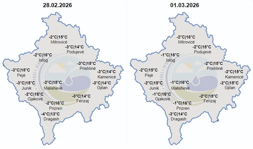 Temperaturat minimale -3 deri -1 gradë Celsius