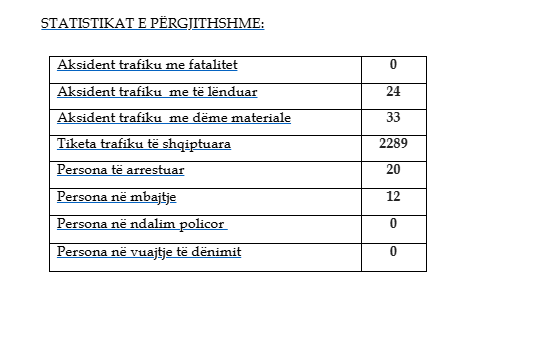 Gjatë kësaj kohe, shton policia, kanë ndodhur 57 aksidente trafiku, ku, 33 janë me dëme materiale e 24 me të lënduar.