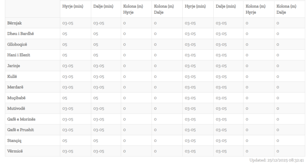 Sipas të dhënave të fundit, pritjet për hyrje dhe dalje nga Kosova janë të shkurta.