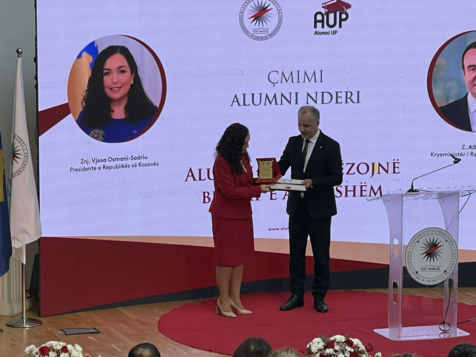 Universiteti i Prishtinë ka ndarë sot çmimin “Alumni Nderi i UP-së”për Presidenten e Kosovës, Vjosa Osmani dhe për kryeministrin në detyrë, ASlbin Kurti.