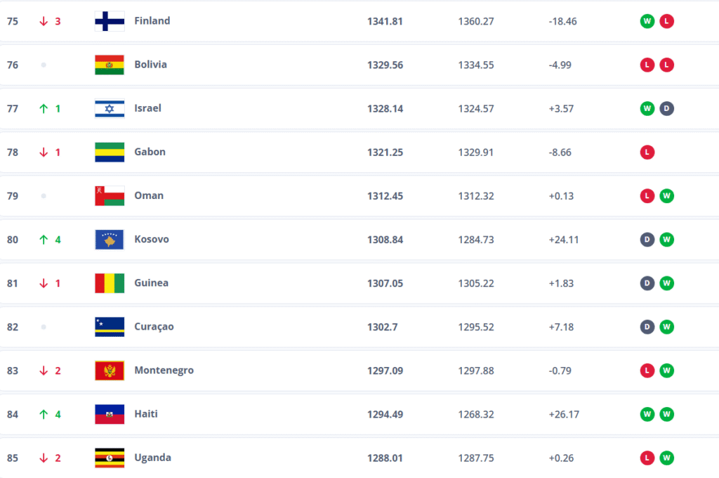 Sipas renditjes së fundit, Kosova është ngritur për katër pozita, dha tashmë renditet në vendin e 80-të në botë, apo pozita më e lartë deri më tani në histori.
