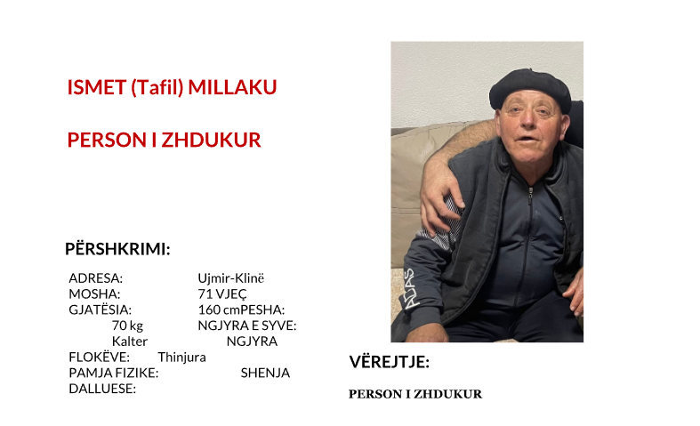 Drejtoria rajonale e policisë në Pejë ka publikuar fotografinë e 71-vjeçarit Ismet Millaku, i cili raportohet se është zhdukur.